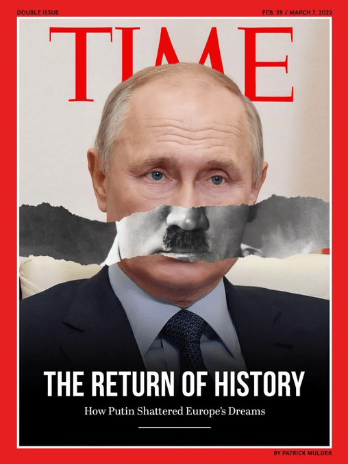 A poco que seamos serios nos resultará inverosímil la visión de un Putin presentado como una especie de reencarnación de un líder soviético. Pero igualmente inadmisible es la creencia de que Putin sea (a la manera en que lo ha presentado la ilustración atribuida a la portada del semanario Time) un Hitler actualizado. Unos, ingenuamente apegados a unos tiempos en que existían firmes alternativas políticas a la sociedad del Capital; otros, subordinados ideológicamente a una visión cosmopolita y globalista que identifica cualquier forma interés nacional como parte de un abyecto autoritarismo fascista.